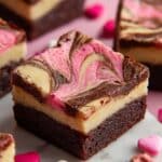Valentine Brookies are a delightful combination of rich, fudgy brownie layered with vibrant pink sugar cookie dough swirled on top. Perfect for Valentine’s Day or any special occasion, these brookies blend the intense chocolate flavor with the sweet, buttery sugar cookie in a marbled effect that’s both visually stunning and delicious.